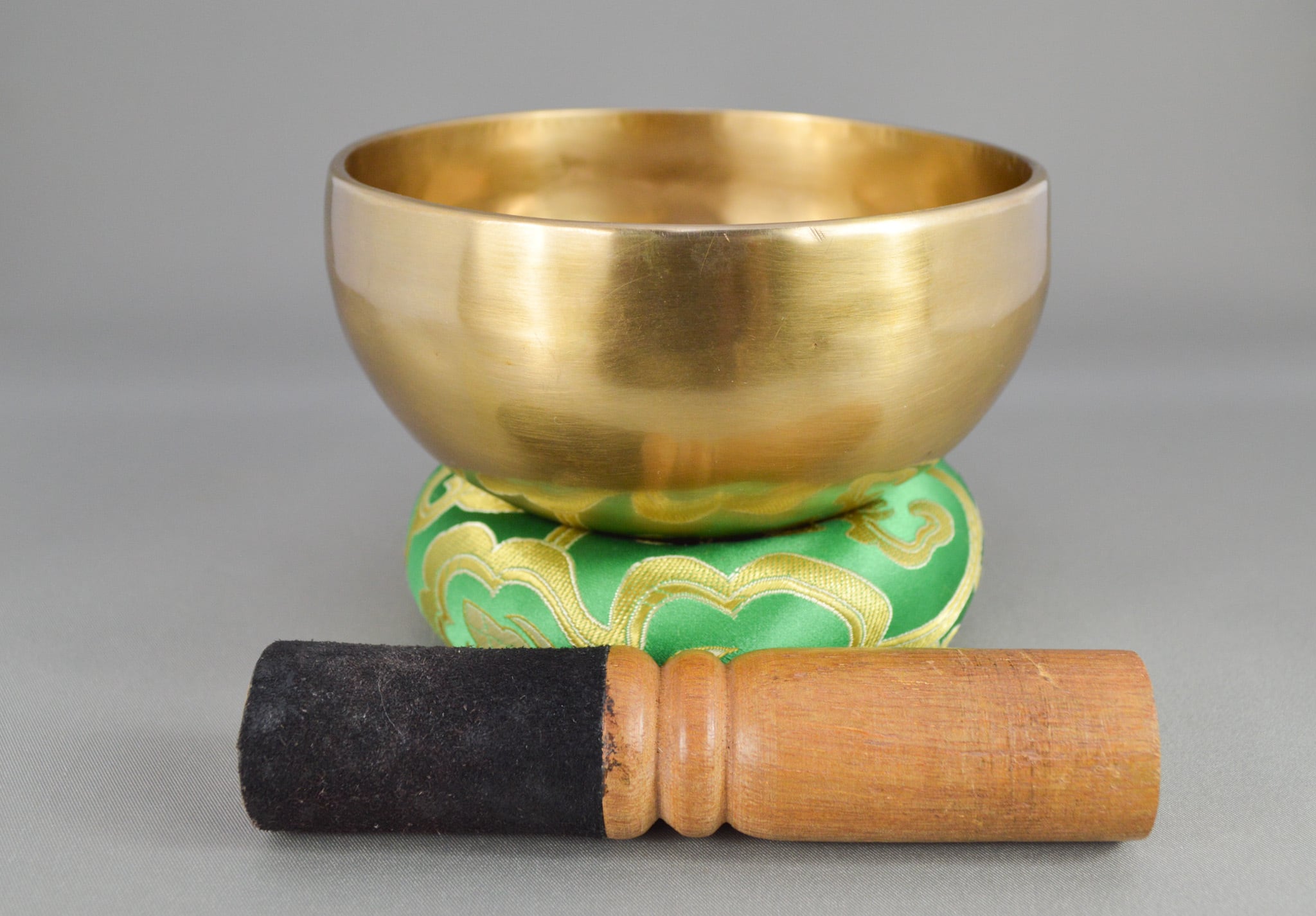 このシンギングボウルは、手打ちシンギングボウルの中で最もシンプルなタイプになります。模様、色などの装飾を何も加えず、シンギングボウルを叩き終えた後、表面を丁寧に磨き上げたものです。スティック、台座のセットとなっており、鳴らし方の説明もついてます、初心者の方でも簡単にお使いいただけます。